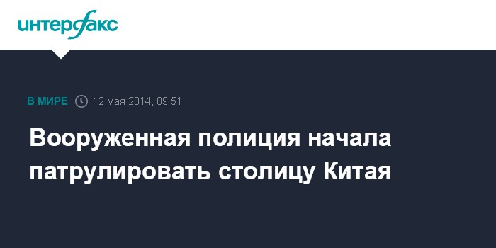 Москва. 12 мая. INTERFAX.RU - С понедельника подразделения народной вооруженной полиции приступили к патрулированию Пекина в целях борьбы с терроризмом и с особо опасными преступлениями, сообщила газета China Daily со ссылкой на управление общественной безопасности города.