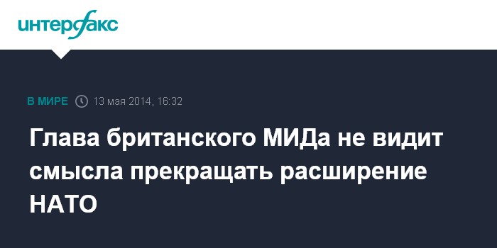 Москва. 13 мая. INTERFAX.RU - Решение о прекращении приема в НАТО новых членов было бы непродуктивным, заявил во вторник глава МИД Великобритании Уильям Хейг.