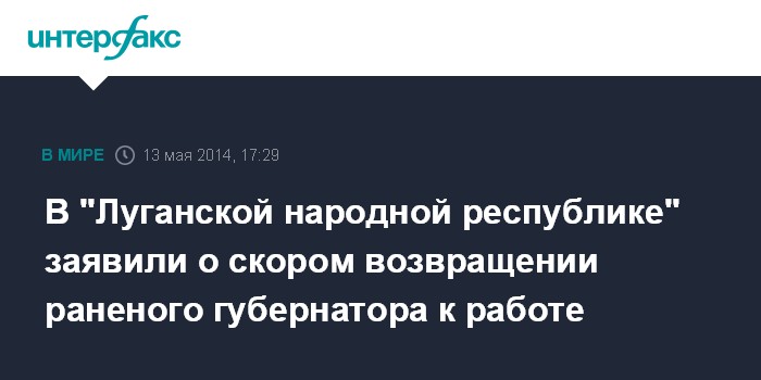В "Луганской народной республике" заявили о скором возвращении раненого губернатора к работе