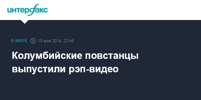 Москва. 13 мая. INTERFAX.RU - Крупнейшая повстанческая группировка "Революционные вооружённые силы Колумбии" (FARC-EP) выпустила рэп-видео, в котором приветствовала мирные переговоры с правительством страны, сообщает Associated Press.