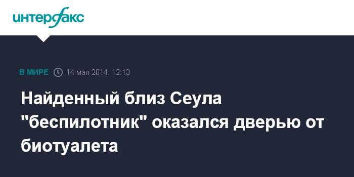 Москва. 14 мая. INTERFAX.RU - Турист, сообщивший властям Южной Кореи об обнаружении беспилотника на горе недалеко от Сеула, перепутал его с дверью от переносной туалетной кабинки, сообщили в среду в южнокорейском министерстве обороны.