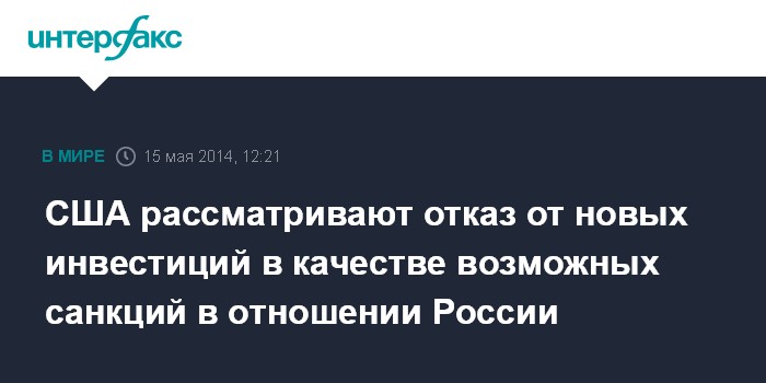 США рассматривают отказ от новых инвестиций в качестве возможных санкций в отношении России
