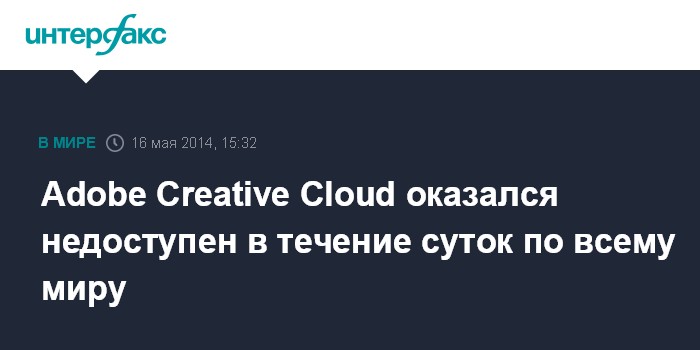 Москва. 16 мая. INTERFAX.RU - Облачный сервис Adobe Creative Cloud оказался недоступен для использования в онлайн-режиме в течение суток для 1,8 млн пользователей, сообщает The Washington Post.