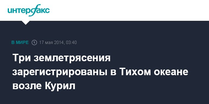 Южно-Сахалинск. 17 мая. INTERFAX.RU - Три землетрясения зарегистрированы вблизи Курил Сахалинской области за прошедшие сутки, одно из них ощутили силой до 3 баллов жители северных Курил, сообщает пресс-служба ГУ МЧС региона со ссылкой на Геофизическую службу РАН.
