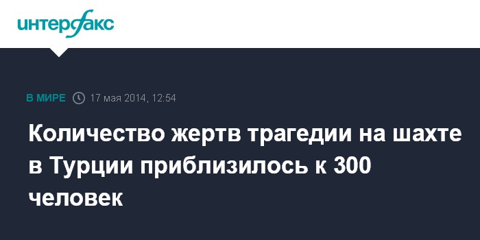Москва. 17 мая. INTERFAX.RU - Взрыв и пожар на угольной шахте в Турции, по последним данным, привели к гибели не менее 299 человек, сообщил в субботу турецкий министр энергетики и природных ресурсов Танер Йылдыз.