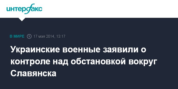 Москва. 17 мая. INTERFAX.RU - Минобороны Украины заявило, что Славянск (Донецкая область) со всех сторон по периметру окружен блокпостами и обстановка вокруг него находится под контролем украинских силовиков.