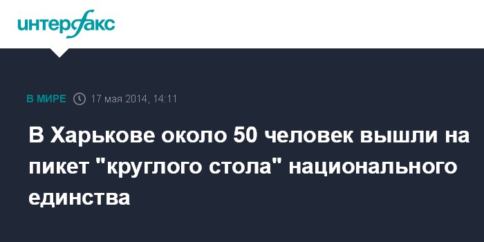 Москва. 17 мая. INTERFAX.RU - Второй общеукраинский "круглый стол" национального единства в Харькове пикетируют люди с георгиевскими ленточками.