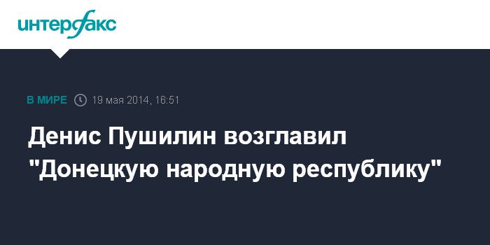 Москва. 19 мая. INTERFAX.RU - Депутаты Верховного совета самопровозглашенной "Донецкой народной республики" избрали главой президиума спикера Народного совета Дениса Пушилина, сообщил "Интерфаксу" сопредседатель правительства ДНР Мирослав Руденко.