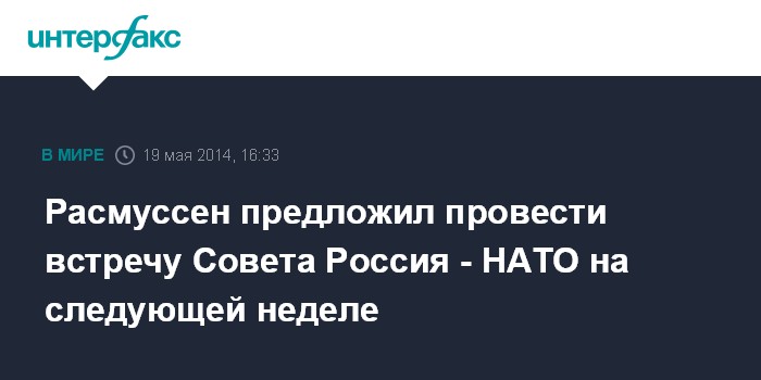 Москва. 19 мая. INTERFAX.RU - Североатлантический альянс выступил с предложением о проведении очередной встречи в рамках Совета Россия - НАТО на следующей неделе.