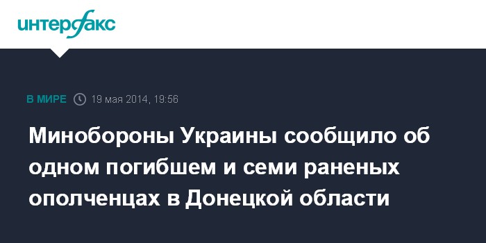 Минобороны Украины сообщило об одном погибшем и семи раненых ополченцах в Донецкой области
