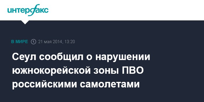 Москва. 21 мая. INTERFAX.RU - Два российских патрульных самолета в среду нарушили южнокорейскую зону ПВО в районе Японского моря, сообщил Объединенный комитет начальников штабов (ОКНШ) Южной Кореи.