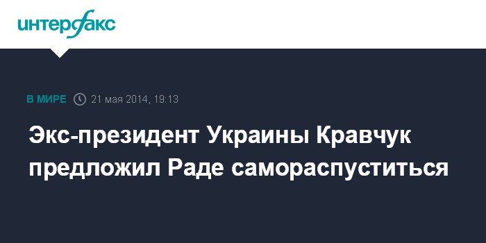 Москва. 21 мая. INTERFAX.RU - Первый президент Украины Леонид Кравчук в ходе заседания "круглого стола" национального единства в среду в Николаеве предложил Верховной раде рассмотреть возможность самороспуска.