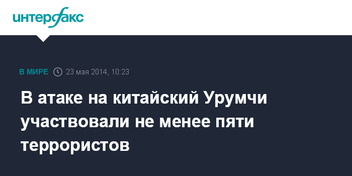 Москва. 23 мая. INTERFAX.RU - Китайские следователи установили личности пятерых террористов, погибших 22 мая при нападении в городе Урумчи, сообщает китайская англоязычная газета Global Times.