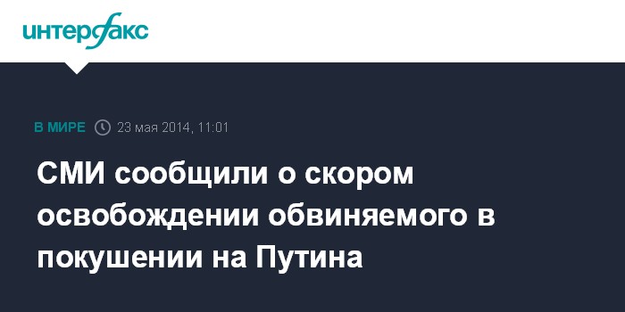 СМИ сообщили о скором освобождении обвиняемого в покушении на Путина
