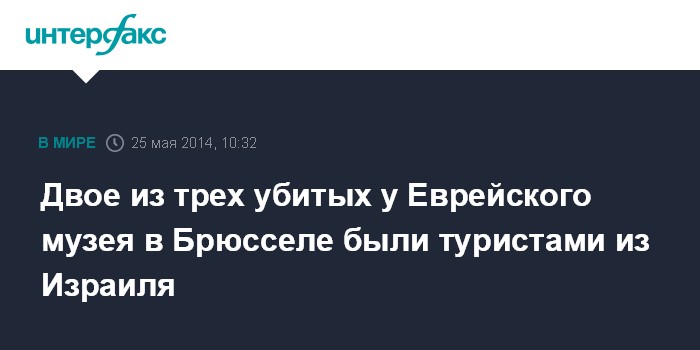 Москва. 25 мая. INTERFAX.RU - Двое из трех погибших в результате стрельбы около Еврейского музея в центре Брюсселя были туристами из Израиля. Об этом сообщает издание Haaretz. По данным журналистов, жертвами стрелка стали супруги. Обоим было в районе 50 лет.