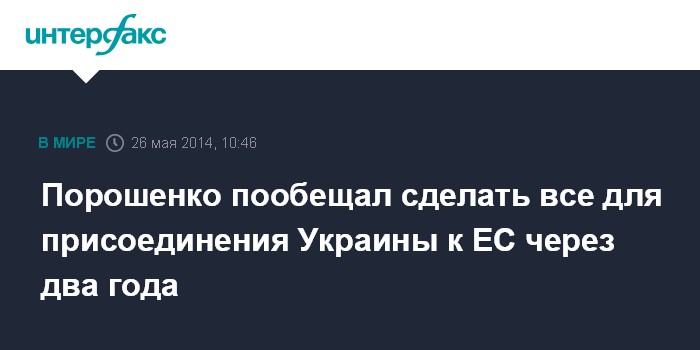 Москва. 26 мая. INTERFAX.RU - Кандидат в президенты Украины, народный депутат Петр Порошенко надеется, что Украина за год-два выполнит взятые на себя обязательства перед Евросоюзом и получит перспективы членства в ЕС.