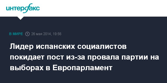 Москва. 26 мая. INTERFAX.RU - Лидер оппозиционной испанской социалистической партии Альфредо Перес Рубалькаба объявил о решении уйти в отставку после поражения его партии на европейских выборах, сообщает в понедельник местная газета El Pais.