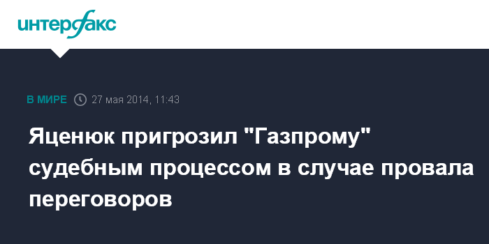 "Если до 29 числа между "Нафтогазом" и "Газпромом" не будет подписано соответствующее соглашение, которое бы отвечало предарбитражной претензии (украинской стороны), это означает, что мы будем встречаться с российским "Газпромом" в суде", - сказал Яценюк во вторник на заседании кабинета министров Украины.