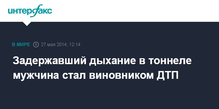 Москва. 27 мая. INTERFAX.RU - 19-летний молодой человек, задержав дыхание во время проезда через тоннель, потерял сознание и стал виновником ДТП, сообщает Associated Press.