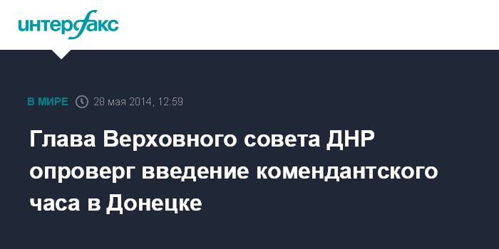 Москва. 28 мая. INTERFAX.RU - Председатель Верховного совета самопровозглашенной Донецкой народной республики Денис Пушили заявил, что комендантский час в Донецке никто не вводил.