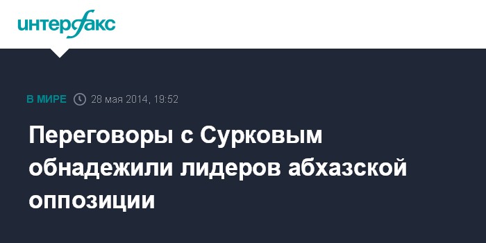 Москва. 28 мая. INTERFAX.RU - Абхазская оппозиция считают переговоры с помощником президента России Владиславом Сурковым "обнадеживающими". Такое мнение озвучил один из лидеров оппозиции Рауль Хаджимба.