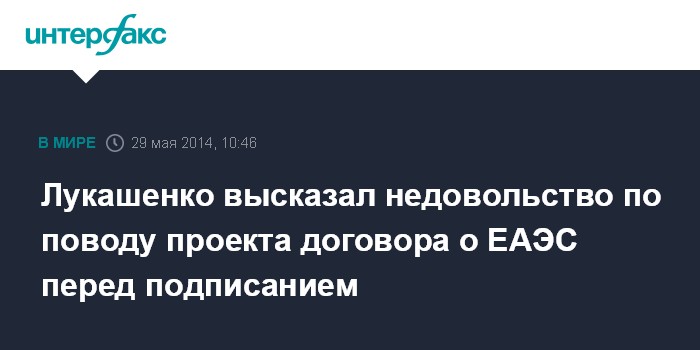 Москва. 29 мая. INTERFAX.RU - Остается некоторая неудовлетворенность в том, что касается договора о создании Евразийского экономического союза (ЕАЭС), заявил президент Белоруссии Александр Лукашенко в четверг на заседании Высшего евразийского экономического совета.