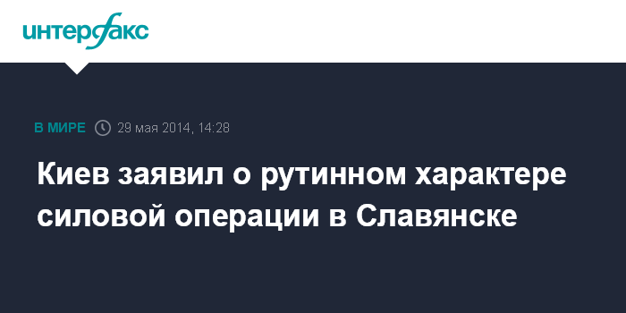 Москва. 29 мая. INTERFAX.RU - Силовая операция в районе Славянска носит рутинный характер, а информации о погибших и пострадавших нет, сообщил руководитель официальной группы информирования о силовой операции на юго-востоке Украины Владислав Селезнев.