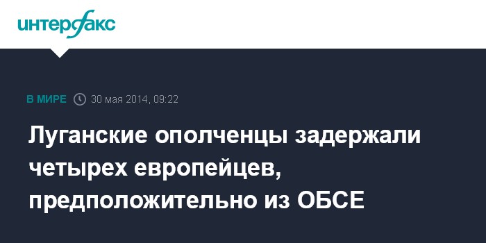 Москва. 30 мая. INTERFAX.RU - В Луганской области в четверг задержана группа из четырех европейцев, которые предположительно входили в состав миссии наблюдателей ОБСЕ, сообщил представитель информационного центра юго-восточного фронта Сергей Веселовский.