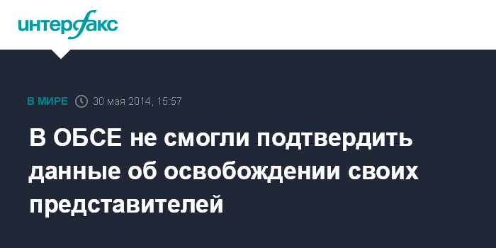 Москва. 30 мая. INTERFAX.RU - В ОБСЕ не подтвердили факта освобождения группы представителей организации, задержанных накануне в Северодонецке.