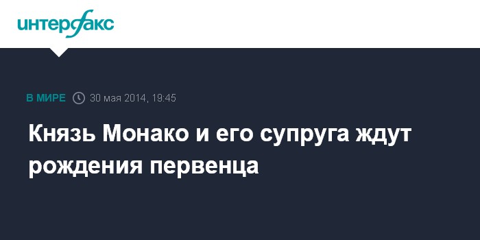 Москва. 30 мая. INTERFAX.RU - Королевский двор Монако в пятницу официально объявил об ожидаемом пополнении в семействе князя Альбера II и его супруги Шарлин.