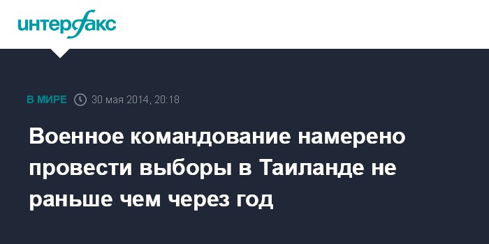 Москва. 30 мая. INTERFAX.RU - Всеобщие выборы в Таиланде состоятся не раньше чем через год, заявил в пятницу командующий армией генерал Прают Чан-Оча.