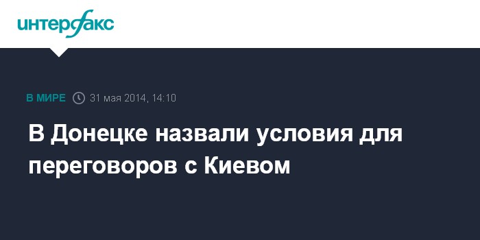 Москва. 31 мая. INTERFAX.RU - На митинге в поддержку "Донецкой народной республики" (ДНР) в Донецке в субботу руководство "республики" назвало основные условия для переговоров с киевскими властями. "Мы будем вести диалог с киевскими властями только в случае признания независимости Донецкой и Луганской республик и вывода украинских войск с этих территорий", - заявил премьер ДНР Александр Бородай.