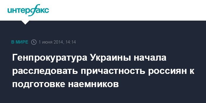 Москва. 1 июня. INTERFAX.RU - Начато досудебное расследование по факту создания незаконных формирований, вербовки и подготовки гражданами РФ наемников для "участия в террористической деятельности на территории Украины", сообщает пресс-служба генеральной прокуратуры страны.