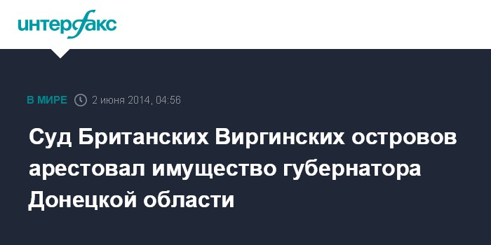 Москва. 2 июня. INTERFAX.RU - Высокий суд правосудия Британских Виргинских островов 27 мая удовлетворил ходатайство ВТБ и арестовал активы бизнесмена Сергея Таруты, которого в начале марта новые украинские власти назначили губернатором Донецкой области, сообщает газета "Коммерсант" в понедельник.