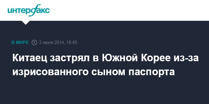 Москва. 2 июня. INTERFAX.RU - Гражданину Китая не дали выехать из Южной Кореи из-за паспорта, изрисованного его 4-летним сыном, сообщает The Daily Mail.