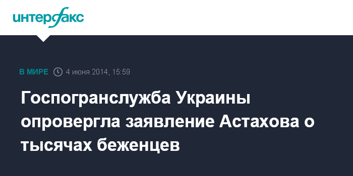 Москва. 4 июня. INTERFAX.RU - В Государственной пограничной службе Украины заявили об отсутствии беженцев на границе с Россией и упрекнули российского детского омбудсмена Павла Астахова в распространении неверной информации.