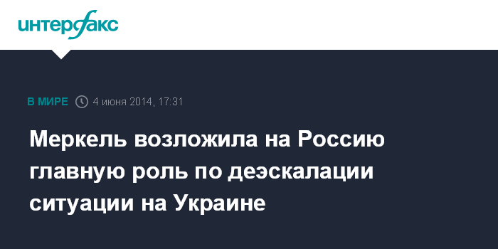 По словам Меркель, Россия должна перейти от конфронтации к сотрудничеству, однако последние события формируют "неоднозначную картину". Канцлер также призвала руководство РФ наладить контакты с избранным президентом Украины Петром Порошенко.
