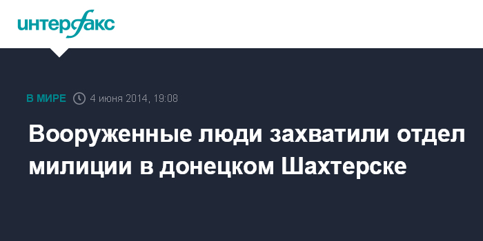 Москва. 4 июня. INTERFAX.RU - Группа вооруженных людей захватила отдел милиции в 60-тысячном донецком городе Шахтерске, завладев транспортными средствами и огнестрельным оружием, сообщила в среду пресс-служба Генпрокуратуры Украины.