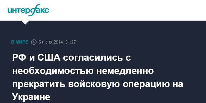 РФ и США согласились с необходимостью немедленно прекратить войсковую операцию на Украине