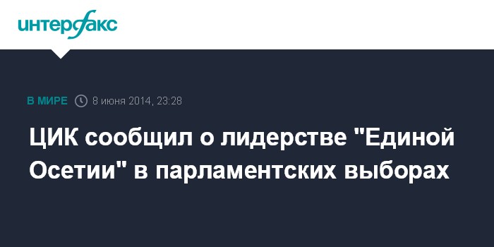 Москва. 8 июня. INTERFAX.RU - ЦИК Южной Осетии отчитался о данных обработки 31,08% бюллетеней после выборов в парламент шестого созыва. Партия "Единая Осетия" лидирует со значительным отрывом.
