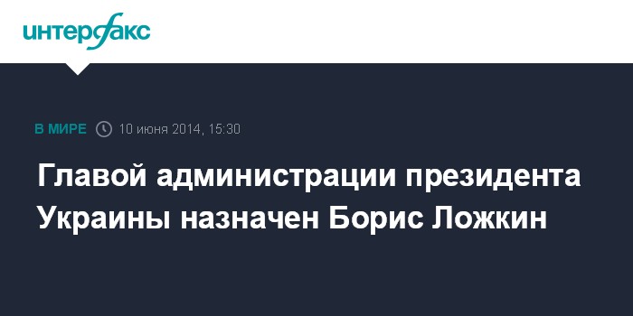 Москва. 10 июня. INTERFAX.RU - Президент Украины Петр Порошенко назначил основателя медиахолдинга UMH Бориса Ложкина главой администрации президента. Соответствующий указ был подписан во вторник, сообщается на сайте главы государства.