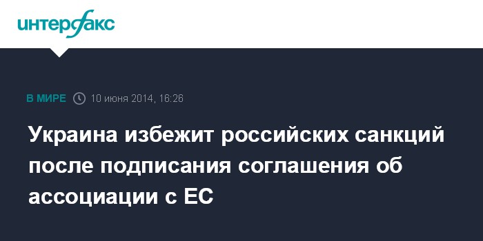 Москва. 10 июня. INTERFAX.RU - Россия не будет вводить санкции против Украины в случае подписания Киевом соглашения об ассоциации с ЕС, заявил глава МИД России Сергей Лавров.
