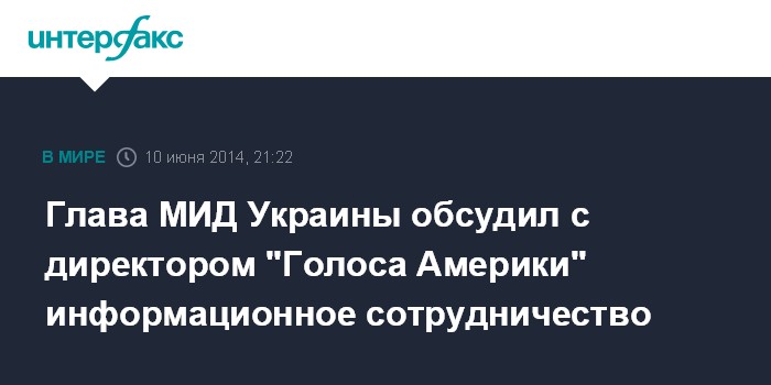Москва. 10 июня. INTERFAX.RU - И.о. министра иностранных дел Украины Андрей Дещица во вторник провел встречу с директором "Голоса Америки" Дэвидом Ензором.