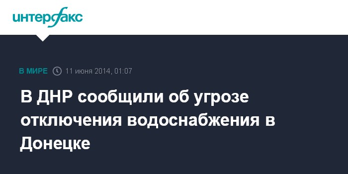 Москва. 11 июня. INTERFAX.RU - В результате артиллерийского обстрела со стороны украинской армии Донецк может остаться без воды, заявили в руководстве самопровозглашенной Донецкой народной республики (ДНР).