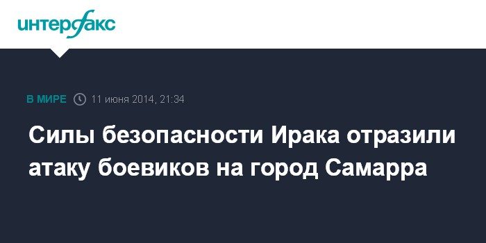 Москва. 11 июня. INTERFAX.RU - Боевикам пока не удается прорваться в город Самарра в провинции Салах-эд-Дин в Ираке, сообщают в среду западные СМИ со ссылкой на очевидцев.