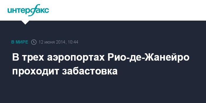 Москва. 12 июня. INTERFAX.RU - В Бразилии в день старта футбольного Чемпионата мира началась забастовка в аэропортах Рио-де-Жанейро, информирует Globo Esporte.