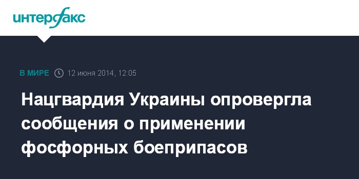 Москва. 12 июня. INTERFAX.RU - В Национальной гвардии Украины опровергают сообщения ряда СМИ об использовании ее бойцами фосфорных боеприпасов.