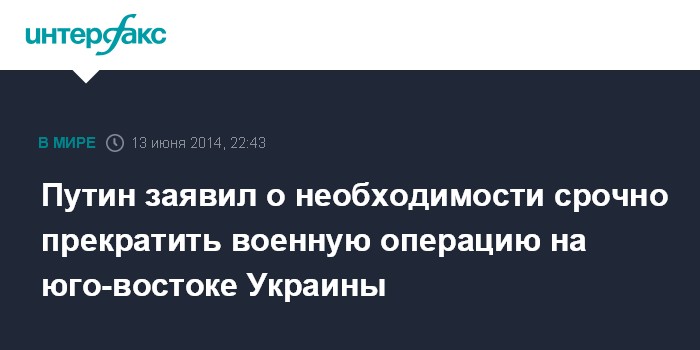 Путин заявил о необходимости срочно прекратить военную операцию на юго-востоке Украины