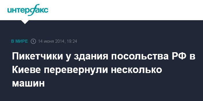 Москва. 14 июня. INTERFAX.RU - Участники акции возле посольства России в Киеве перевернули вверх колесами несколько автомобилей с дипломатическими номерами, один из активистов пытается снять государственный флаг РФ.