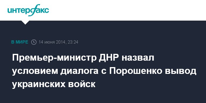 Москва. 14 июня. INTERFAX.RU - Премьер-министр самопровозглашенной Донецкой народной республики Александр Бородай видит возможность для диалога с новым президентом Украины Петром Порошенко, но считает его эффективным лишь при соблюдении ряда условий.